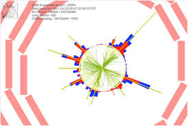Simulated event in the CMS detector: a collision in which a micro black hole may be created
