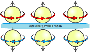 Rotating black holes are surrounded by a region of spacetime in which it is impossible to stand still, called the ergosphere. This is the result of a process known as frame-dragging; general relativity predicts that any rotating mass will tend to slightly "drag" along the spacetime immediately surrounding it. Any object near the rotating mass will tend to start moving in the direction of rotation. For a rotating black hole, this effect is so strong near the event horizon that an object would have to move faster than the speed of light in the opposite direction to just stand still.
